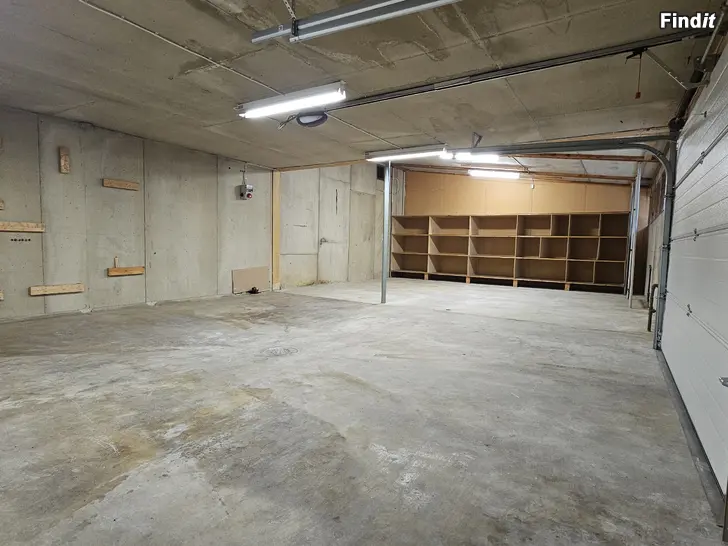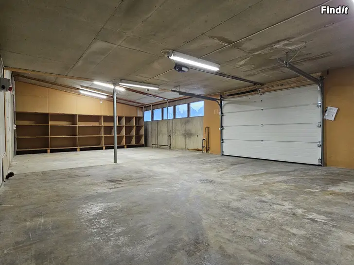 Uthyres verksamhetsutrymme/lagerhall/garage 73 m² i Jakobstad. Storlek på dörröppningen 300 cm bred, 197 cm hög. Perfekt för företag för verksamhet eller som lagerutrymme. Väggarna har nyligen målats vita efter att bilderna togs.