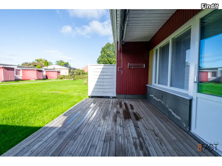 Radhuslägenhet 2 r + kök, 60,3 m², i Bostads Ab Trean Närpes. Adress Töndergränden 9 A 5, 64200 Närpes. Fin gavellägenhet med sovrum, vardagsrum, kök, badrum/WC, förrådsutrymmen samt terrass mot väster.