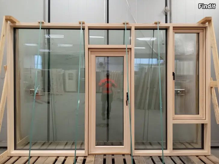 *GLASVÄGG 6-delad, 4st fasta fönster, 1st öppningsbart Tilt&Turn vädringsfönster, 1st Helglas terassdörr