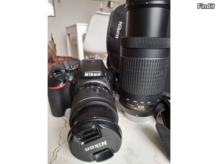 Systemkamera Nikon D5600 använd max 2h. Nypris 936,90€. Med på köpet fås objektiv Nikkor AF-P DX 70-300Mm F/4 5-6.3G samt laddare och kameraväska Säljs även på andra sidor