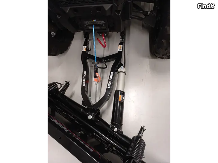 Vi har även utrustad maskinen med Polaris original schaktblad med sidoblad. Dit monterades även elhydraulisk cylinder så ni kan svänga schaktbladet enkelt direkt från styret.
