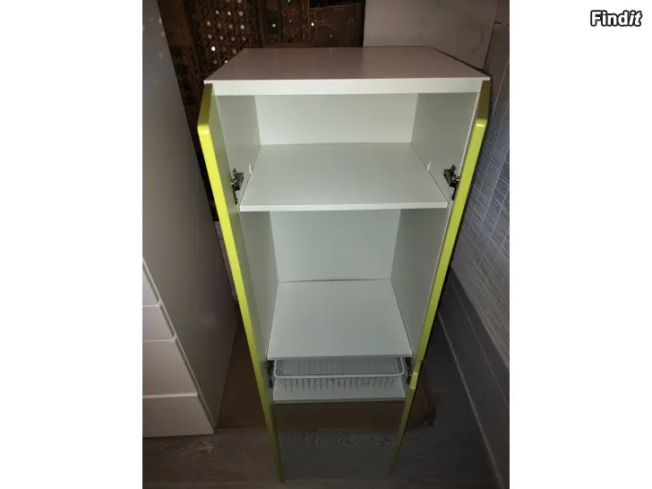 Fint klädskåp i gott skick med hyllplan, klädstång, klädkorg.