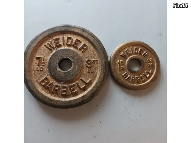 Vanhat retro käsipainot valuraudasta. Irrotettavat laatat. Isomman laatan paino 3,87 kg ja pienemmän 0,68 kg. Yhden kokonaispaino 10 kg.