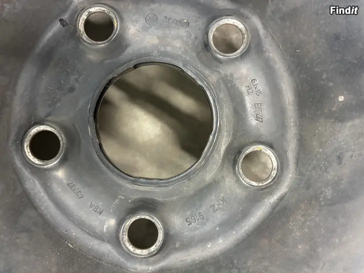 4 st Plåtfälgar 15”, 6” breda. Bultmönster 5/100. VAG, Volkswagen, Seat, Skoda, Audi m.fl. Även navkoppar 4st 15” till VW Golf 4 €50,-