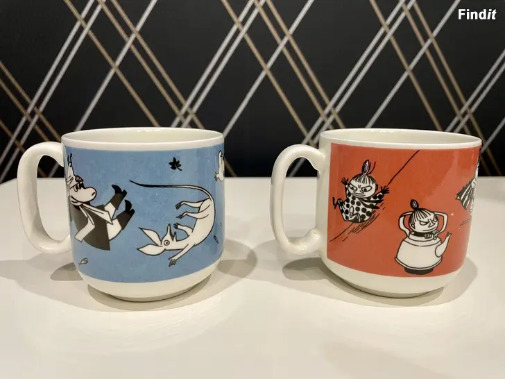 Två olika muminmuggar i perfekt skick från tidigt 90-tal. Pris 70 €/st.