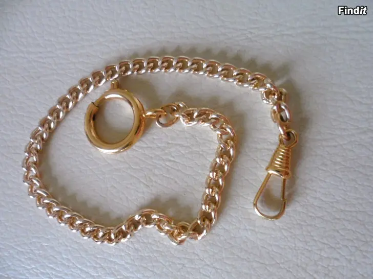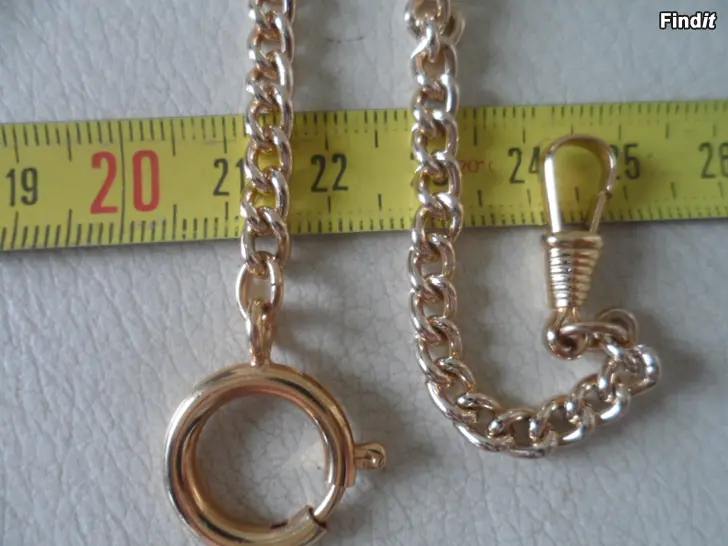 Kokonaispituus 25cm, ketjun leveys 5 mm, kullattu metallia, ei leimoja. Käyttämätön, uusi.