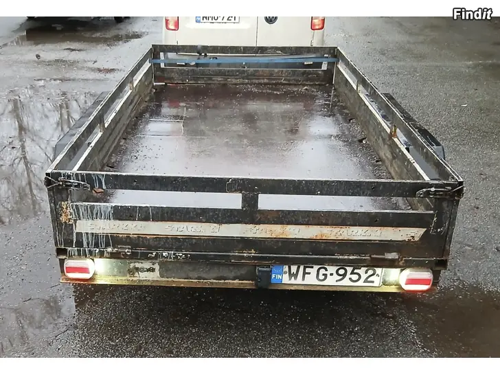Vagnen har fungerande belysning, ramen rostat undertill så behövs svetsas infästningarna till axlarna. Bak och frambrädets lås anordning lite defekt. Bra däck med aluminumfälgar, Går lätt efter bilen