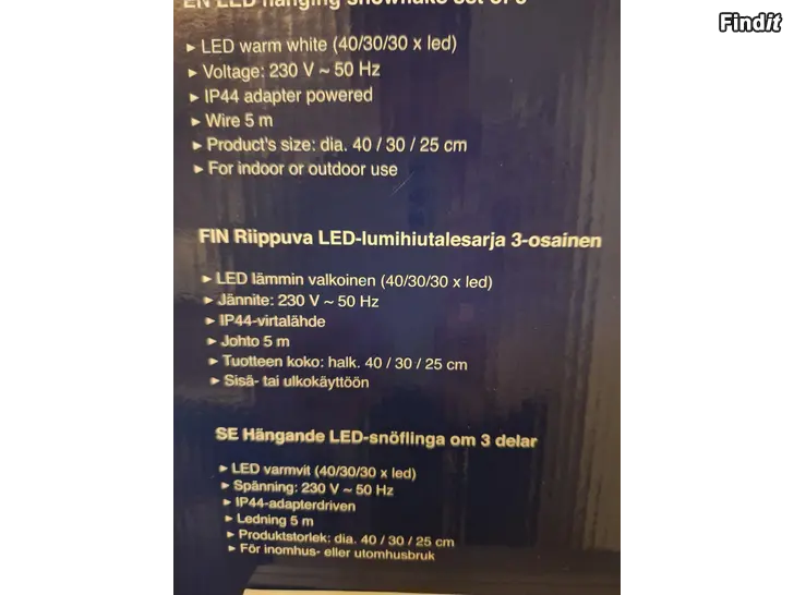Fin ljusserie, ny, endast testad, passade inte där det var tänkt. För inom- eller utomhusbruk. Se närmare information på bild 2.
