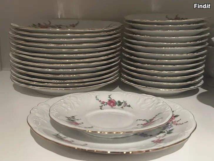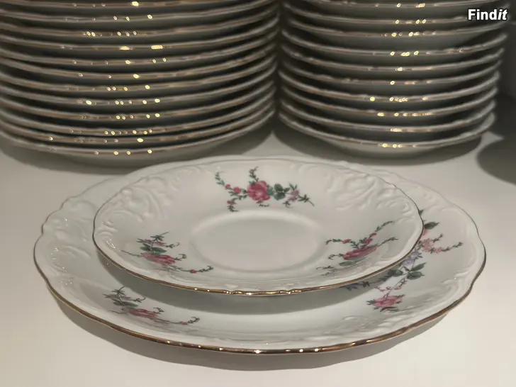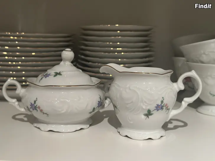 Fin, ny kaffeservis säljes. Till kaffeservisen hör 14 kaffekoppar med tillhörande kaffefat, assietter samt gräddsnäcka och sockerskål. Servisen har aldrig kommit i användning hemma hos oss.