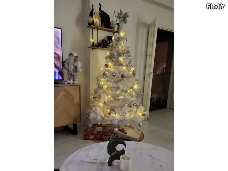 Vit plastjulgran julpynt och julklappar följer inte med