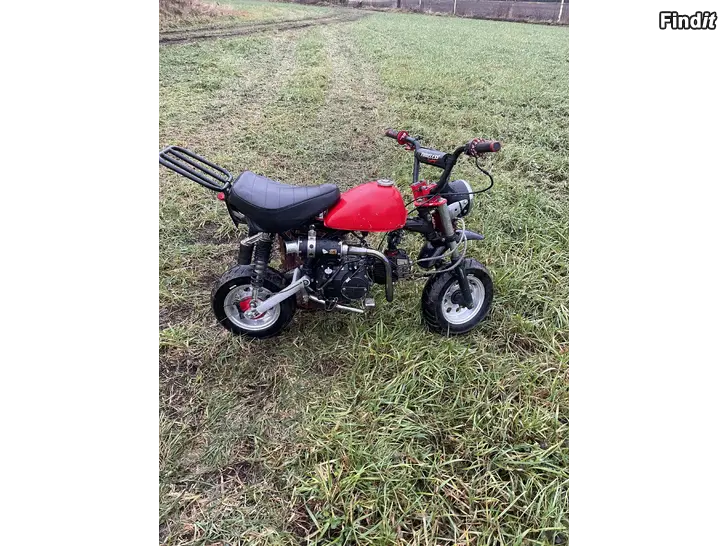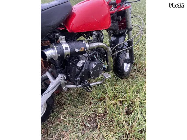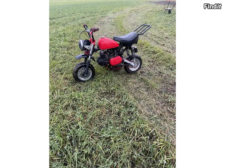 Säljer nu mitt skyteam monkey för att det inte används längre. Det är 125cc motor på och ny lampkåpa och lampa finns men inte kopplad. Backlampan är inte heller kopplad. Moped går mycket bra men överfldar mycken nör man står i still och gasar. Ingen tongång. Mycket extradelar följs med. Inga byten!