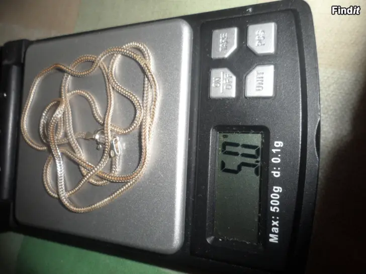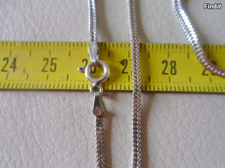 Hopeinen kaulaketju pituus 60cm, paino 5g. Leimat löytyy, hopealeima 925.