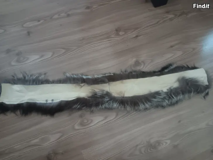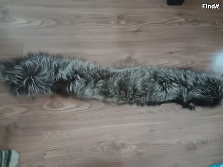 Äkta silverräv. Ca 100 cm. Oanvänd, mjuk och i bra skick. Några knappar isydda på skinnsidan men fås enkelt bort.