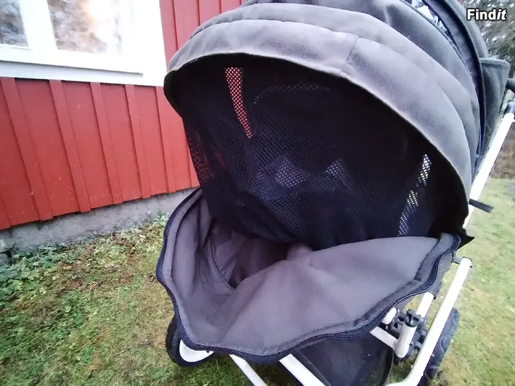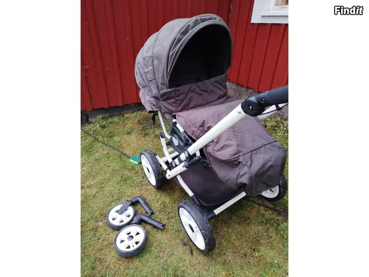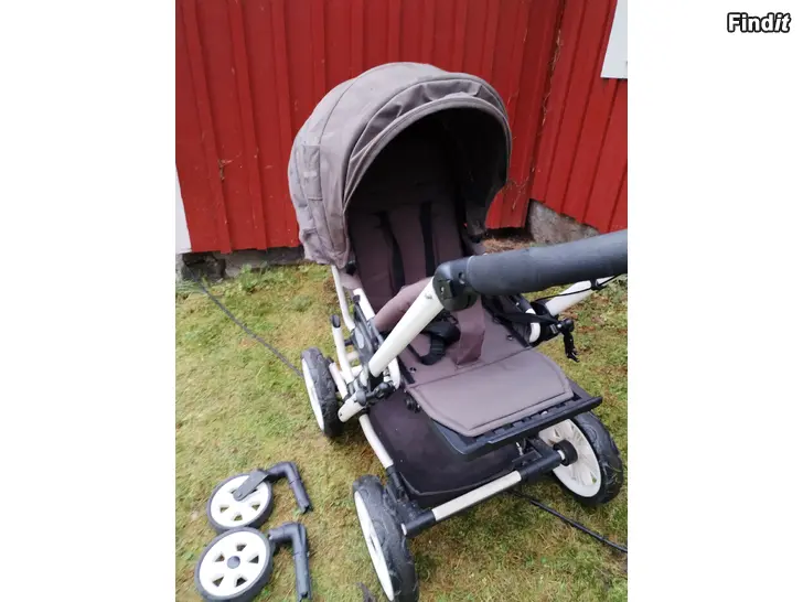 Mångsidig Gesslein F6 kombivagn söker nytt hem. Kan användas från 0 - 3 år. - bärkasse - fotsack - myggnät - stor sufflett som går att öppna upp -2 olika hjul framtill, vanliga och svängbara - svängbart handtag så att barnet färdas i andra riktningen - ställbart ryggstöd och fotstöd - extra sittskydd med, löstagbart - löstagbara tyg de rutiga tygen kan tas bort separat ifall man inte gillar dem! Vagnen har alltid förvarats inomhus.
