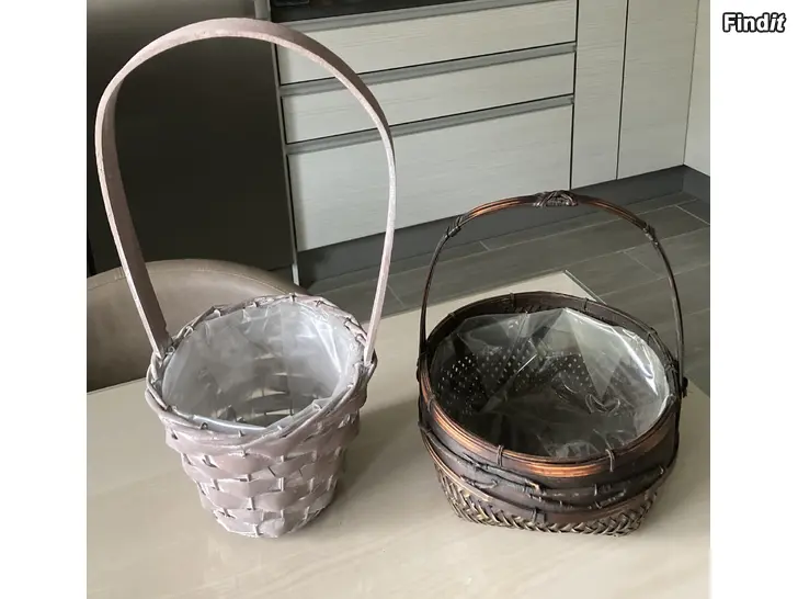 Säljer två stycken korgar, en låda och tre skålar för t.ex julblomsarrangemang, 5 €/st. Dessutom två bolldekorationer och en ren, 1€/st. Snögubbsdekorationen 2 €. Allt i bra använt skick. Finns i Vasa. Kan postas mot portokostnad.