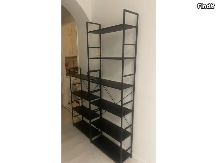 Hylla JYSK Astrup, mått L59 x K176 x S24 cm. Lätt men stadigt! Till höger i denna bild, och den som finns på vänster är samma storlek, bara höjden mindre, 112 cm och säljs på priset 15€.