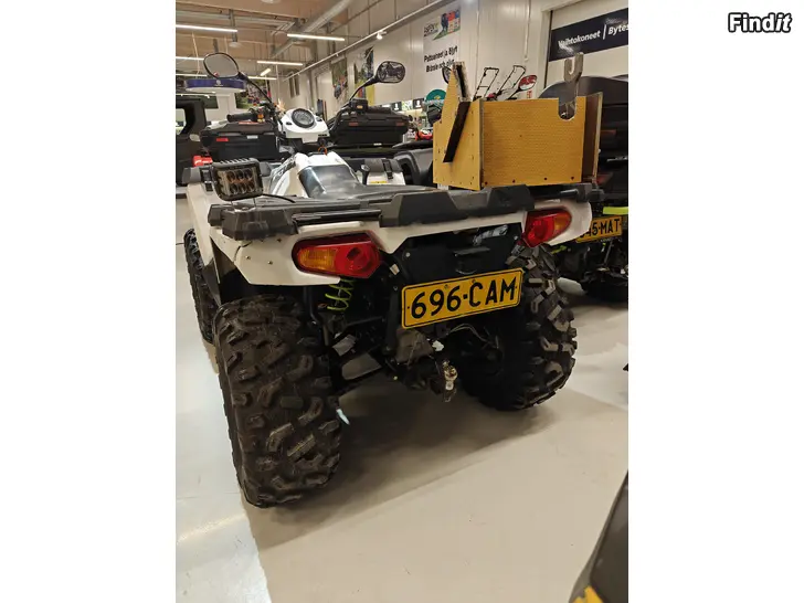 Polaris Sportsman 570 Forest årsmodell 2015. Mätarställning 4957km och 755 timmar. Utrustad med större däck. Vinsch och IronBaltic-fäste för snöblad ingår. Inget snöblad. Egentillverkad smart motorsågslåda.