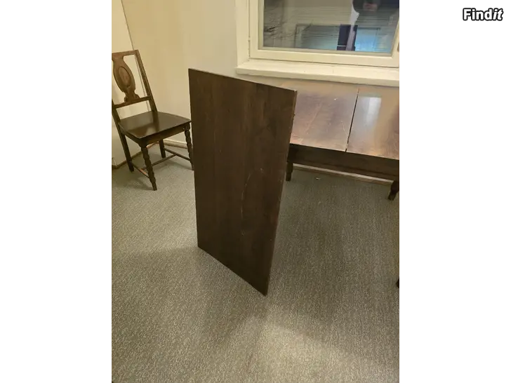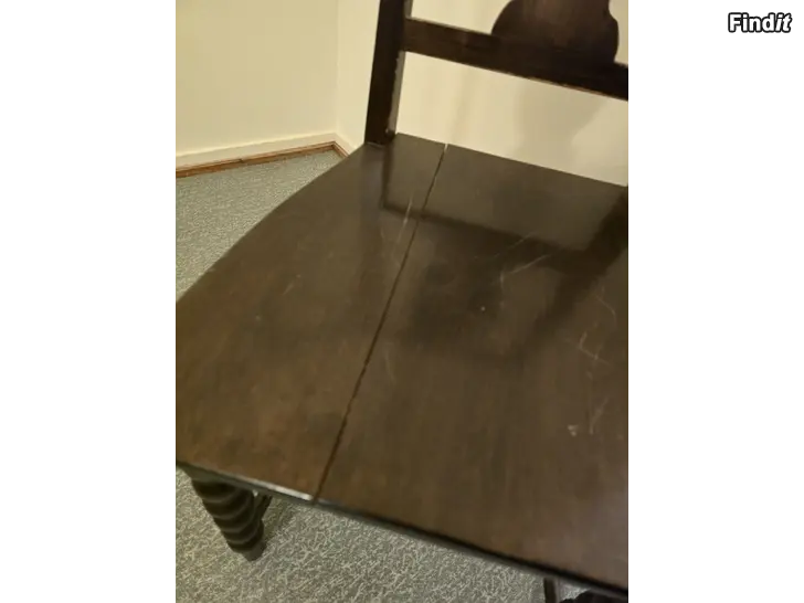 Äldre köksbord med 4st stolar. 1 av stolarna har en spricka se bilden men den är stabil. Bordet går att förlänga med skivan som syns på bilden. Finns i Vasa.