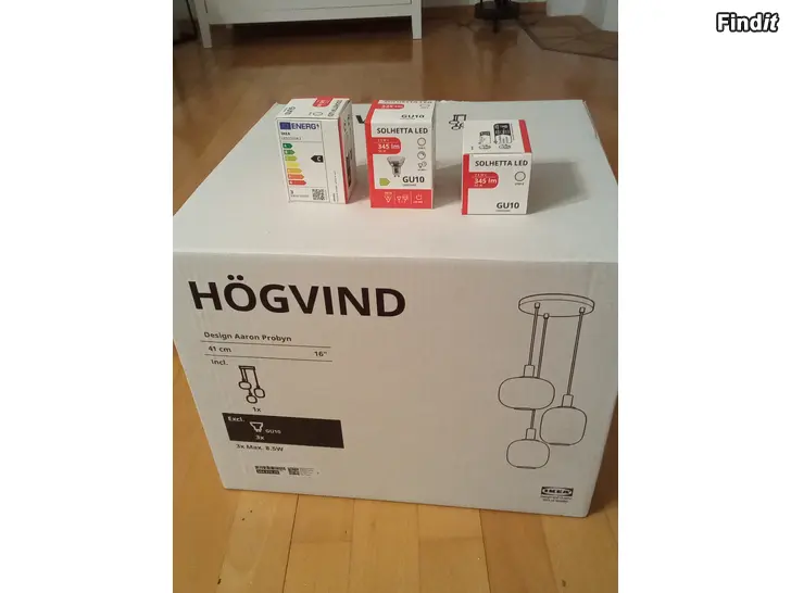 Säljer oanvänd Taklampa Ikea Högvind med 3 lampor 90 euro. Nypris 99,00 + 3 x lampor a 2,99 = 107,97.