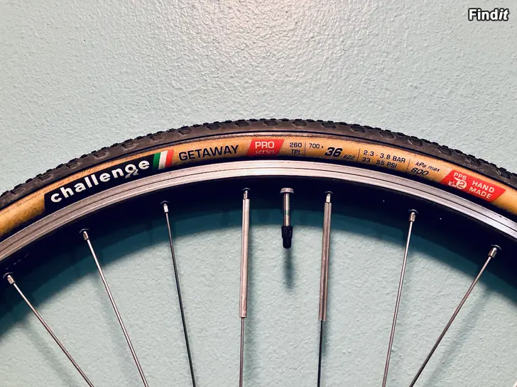 Renkaat: Challenge Getaway 36-622 + sisärenkaat + en mene takuuseen, mutta saattaa olla myös pistosuojanauha sisällä, en siis 100 varma kuitenkaan ole...