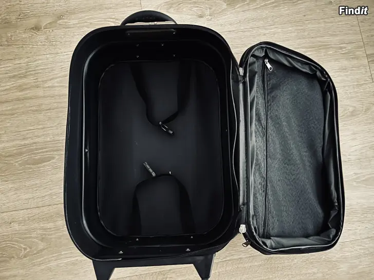 Säljes liten svart reseväska, ca 20x50cm. Använd en gång.