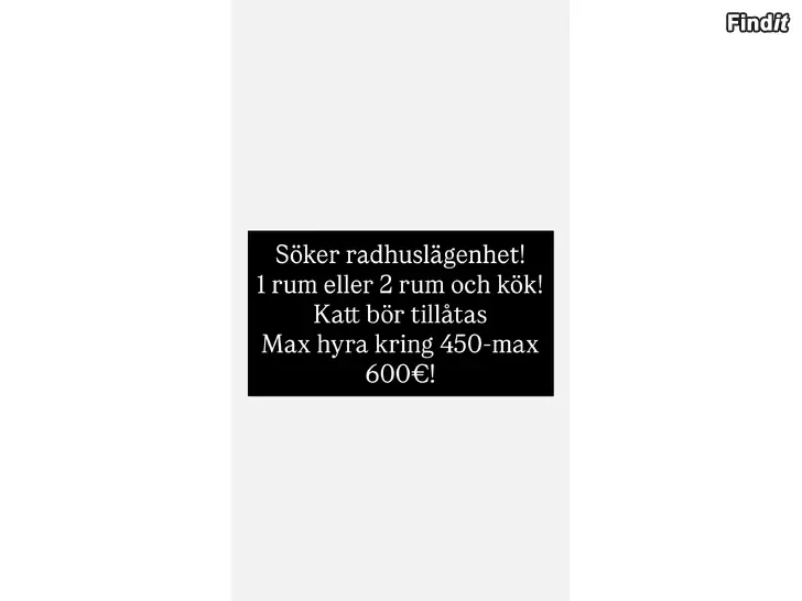 Obs. Önskar att hyran ligger omkring 450-550€ men absolut max 600€!