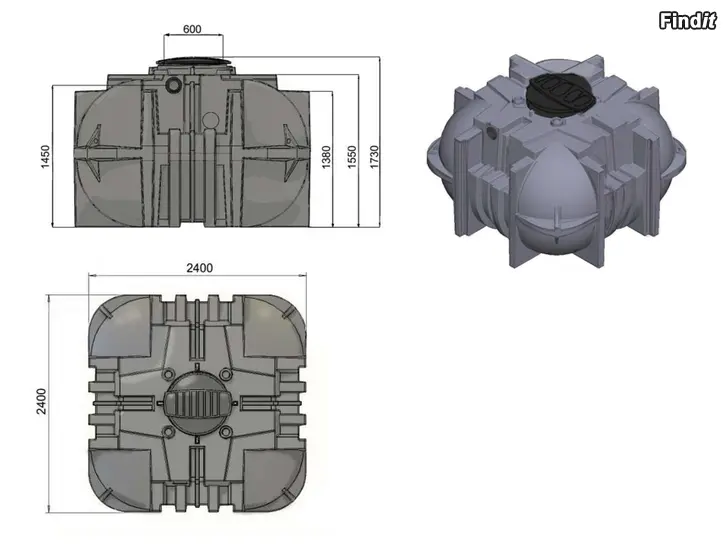 Tanken är tillverkad av hållbar, UV-skyddad PE-plast. UV-skyddet förhindrar algbildning i tanken.
