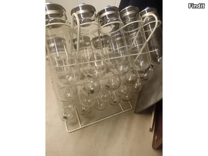Troligtvis från ca 60 talet, ställning med 16 glasburkar med lock,, pris 250€??,, tel 0400767223