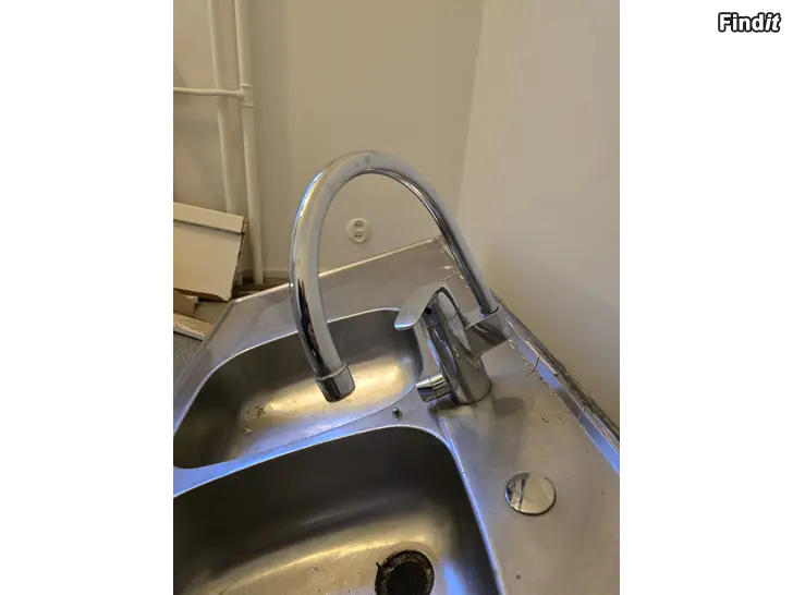 Diskbänk med kran. 140x62 cm. Finns i Vasa.