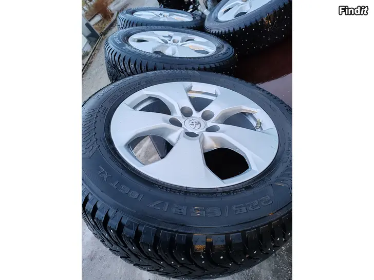 Säljes en serie Toyota RAV 4 2021 original fälgar med Nokia Hakkapelitta 8 dubbdäck 225 65 17. Bultmönster 5*114,3 och centrumhål 60,1mm. Däcken är i prima skick.