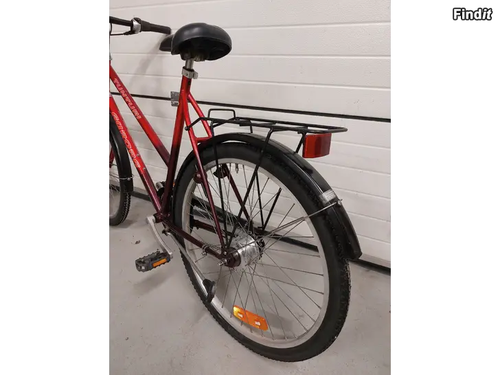 Dam-/Flickcykel Tnturi Aurora 26 tum. 7 växlad Nexus. Ramhöjd 56cm. Fotbroms, fälgbroms fram. Nytt växelvrede, ny kjed. Ramlås x 1 nyckel. Nya däck. Korg med snabbfäste. Beg. dubbdäck ingår. Servad o rullar fint.