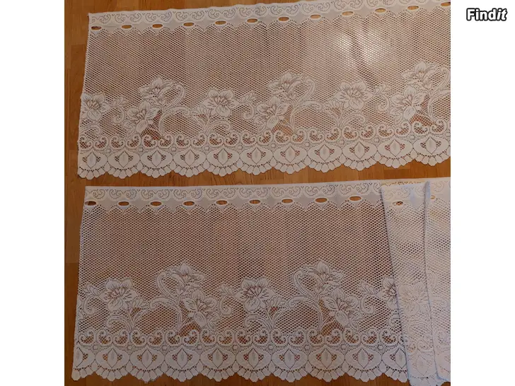 Virkade gardinkappor, 200x47cm och 100x47cm. Den större 30€ och den mindre 20€. Säljes tillsammans eller enskilt.