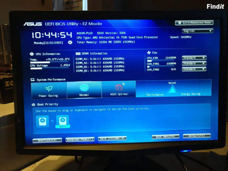 Säljer en Acer Aspire dator med Asus a88xm-plus moderkort, Athlon 3,4 Ghz Quad Core x4 750k processor och 16 GB DDR3 RipJaws minnen. Coolermaster AIO vätskekylare med 2st. blåa ledfläktar. Palit Geforce 210 grafikkort, integrerade grafiken fungerar inte med denna processor. Linux Mint installerat på en 80 GBs mekanisk HDD men kan också fås med valfri Windows installation 11,10, 7 eller XP ifall man vill använda datorn för retrospelande. Datorn fungerar bra för surfande och spelar t.ex. Youtube videor i 1080p utan problem. Ingår ingen skärm, DVD/CD, strömkabel eller annan kringutrustning. Säljes för 50 euro prutat och klart. Finns i Jakobstad