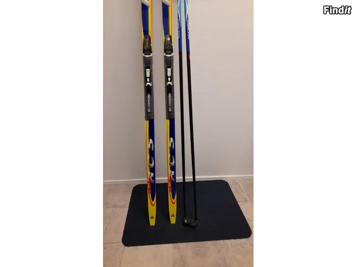Några år gammalt Ficher RCS 195 cm tävligskidor, fortfarande ok skick. - c. 78 – 85 kg - Salomon skidskor EUR 44 - SNS bindningar - stavar 120 – 160 cm