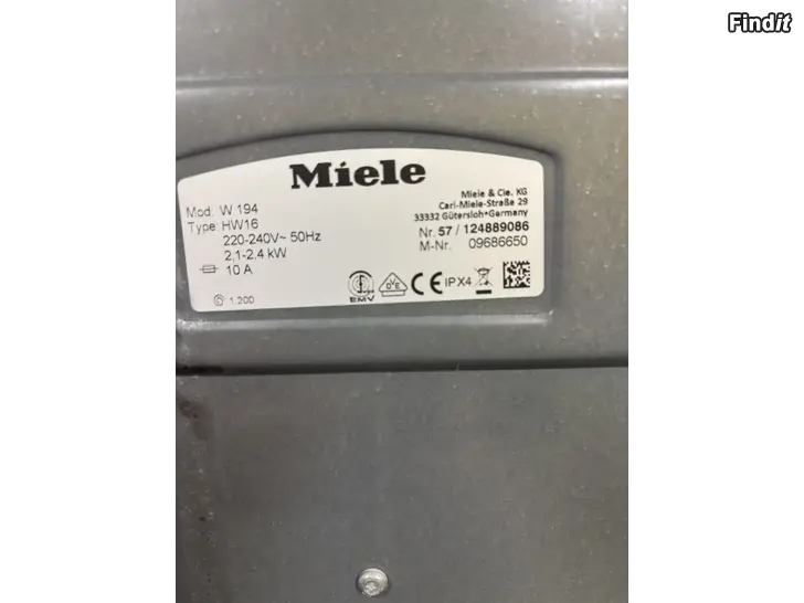 Tysktillverkad Miele, nypris var ca 900 EUR. Säljes som obehövlig, Felfri kvalitetsmaskin, går helt otroligt tyst! Centrifugering 1200 v/m. Modellbeteckning: W194