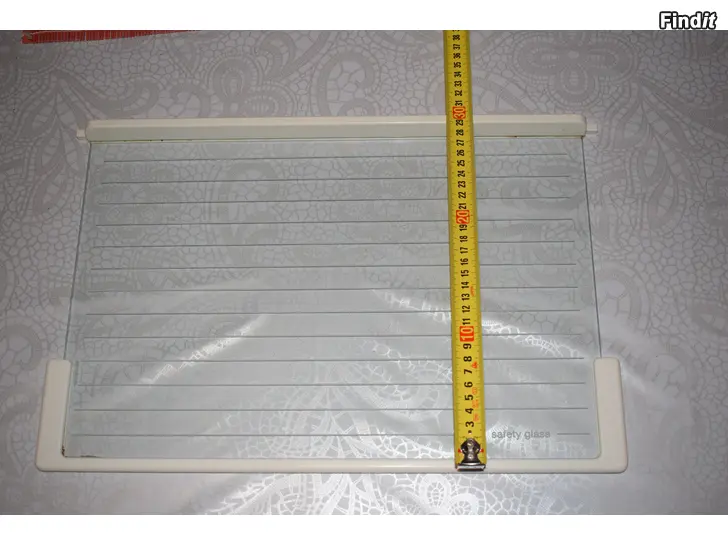 2.Glashylla från något kylskåp, minns inte exakt. Kanske UPO 493002400 säkerhetsglas 43,4 cm x 29,5 cm