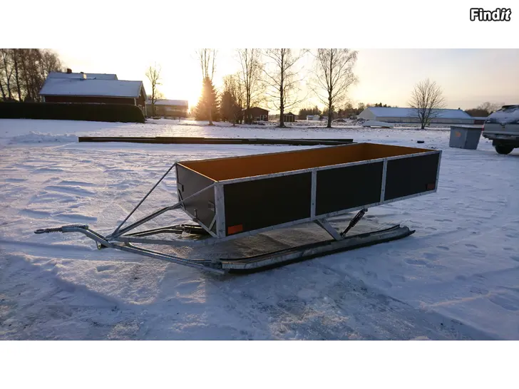 Stabil och hållbar galvaniserad kälke med plastbelagda skidor, stötdämpare och löstagbara gavlar. Lådans mått 210x85 och höjd 35cm.