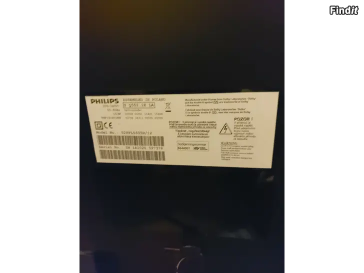 Philips platt TV, 52 tums skärm. Ej smart TV. Fjärrkontroll kommer med. Väger 20 kg.