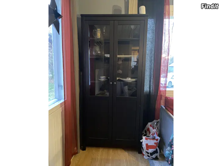 Hemnes vitrinskåp säljes för 80€. Hämtas från Bergö.