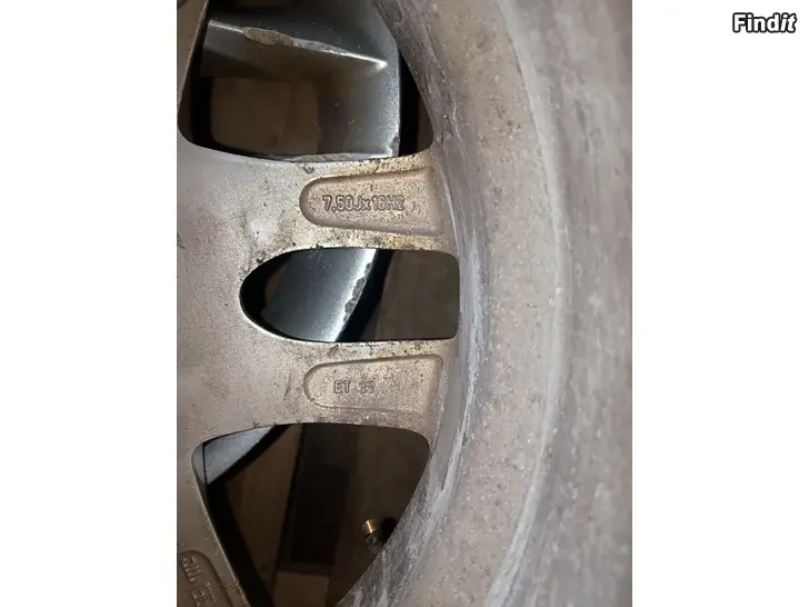 7,5 x16. Et 35,,, 3 fälgar helt ok men ena är lite nött i bult hålen, se bild,, tel 0400767223