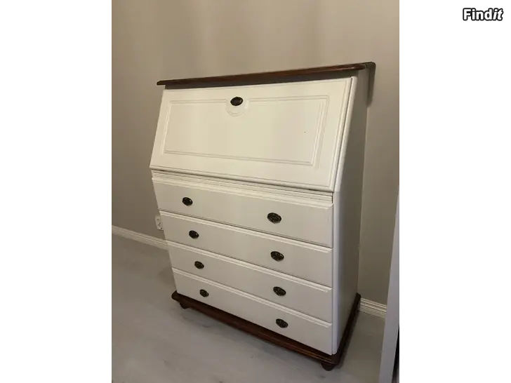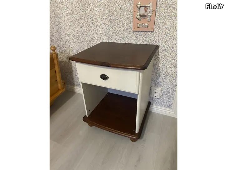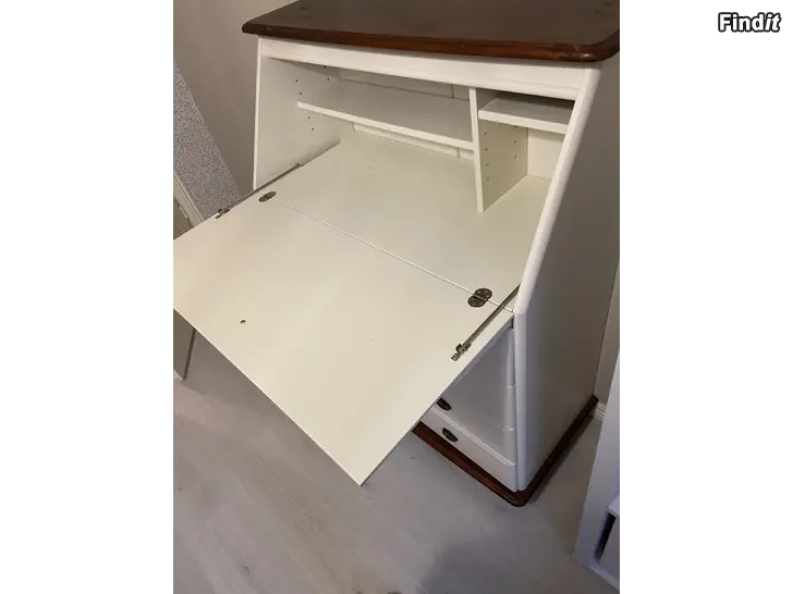 En klaffbyrå som också fungerar som skrivbord + ett matchande nattduksbord, båda ur Laulumaas Viktoria serie.