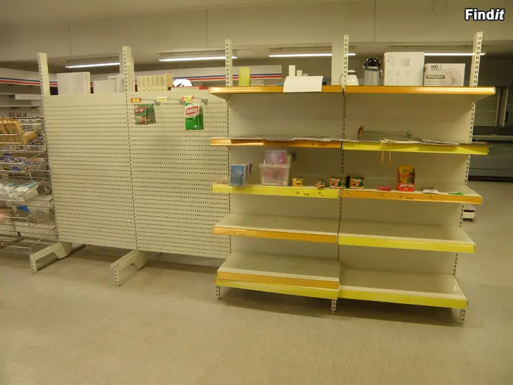 - Butikshyllor, vägghyllor samt fristående 2-sidiga. Fabrikat GWS