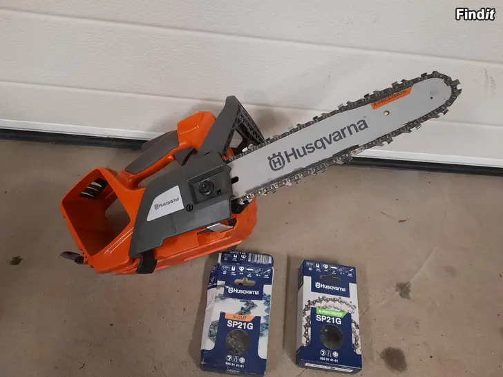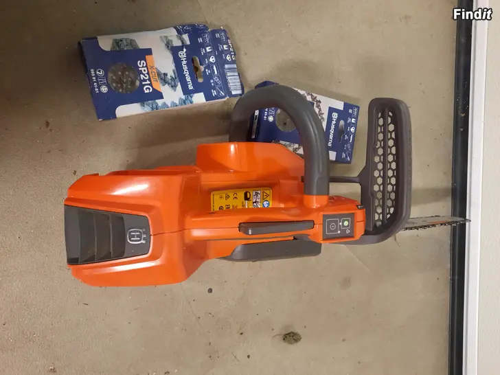 Säljes behändig elmotorsåg. Medföljer två använda kedjor och en ny kedja. Säljes utan acku och laddare.