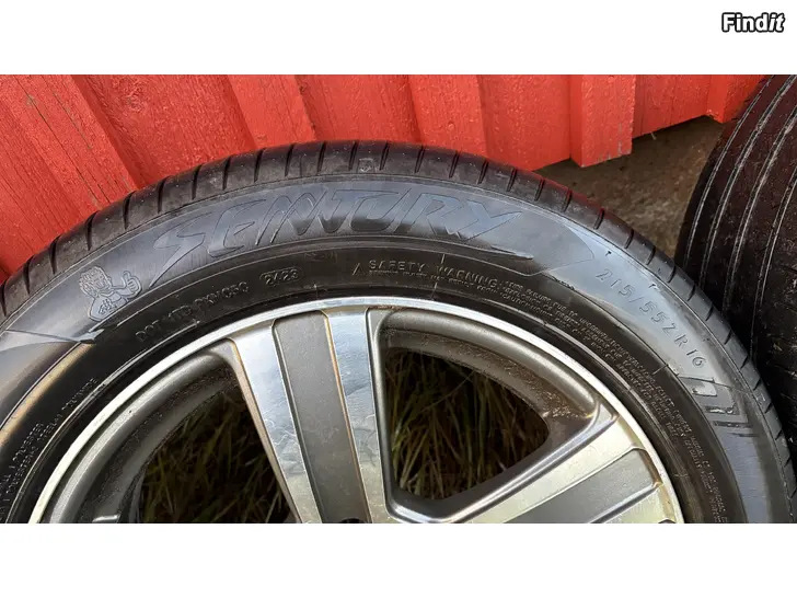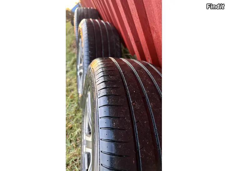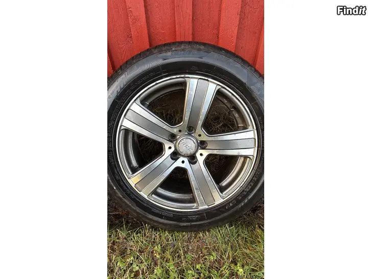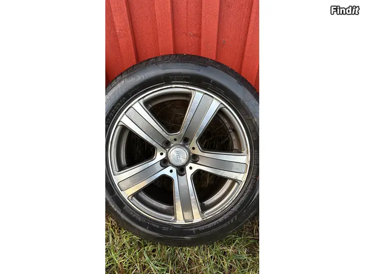 Däcken har bara blivit använda 1 säsong och väldigt lite medkörda. Märket är Sentury. Fälgarna passar till Volvo och någon av fälgarna har lite skador.