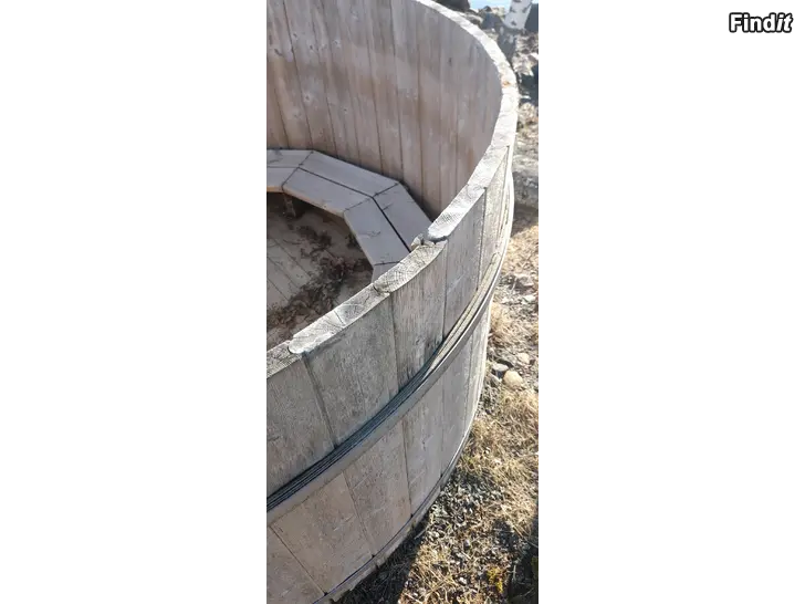 Badtunna säljes som projekt. Komplett med kamin monterad inne i tunnan, skorsten och lock. Färdigt nermonterad. Några brädor är dåliga men 3 st oanvända medföljer.