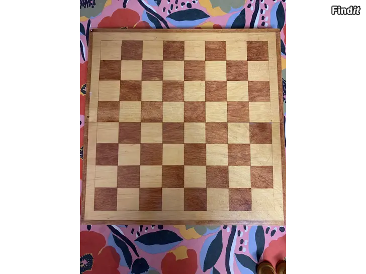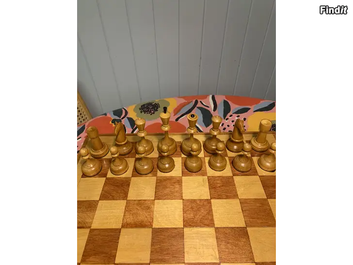Brädet är fällbart och rymmer samtliga pjäser invändigt. Mått bräde: ca 45 × 45 cm Kungens höjd: ca 11 cm Samtliga pjäser i trä Filttassar under alla pjäser.