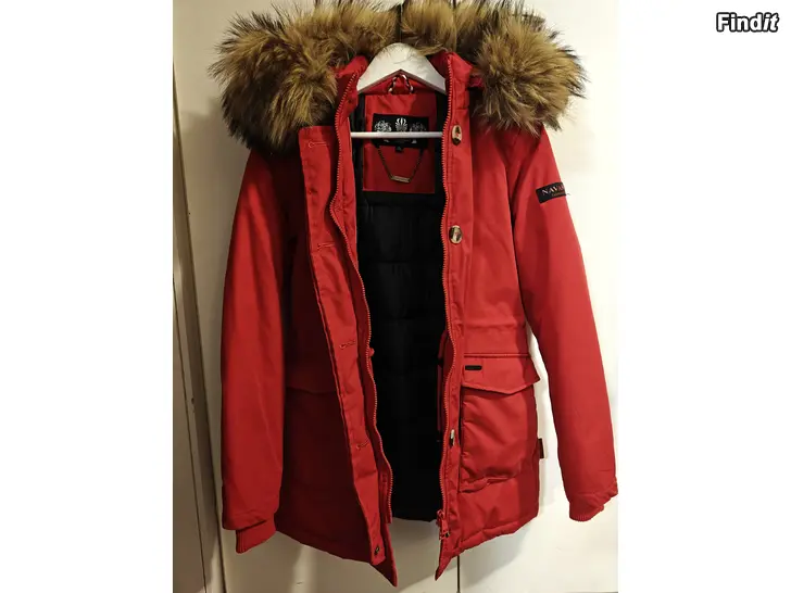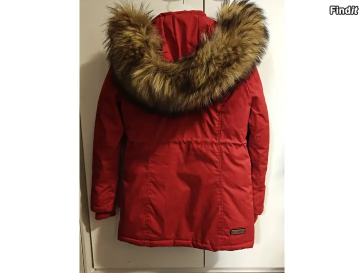 Säljes en röd och varm vinterjacka av märket Navahoo i storlek XS. Använd 2 vintrar under den kallaste tiden. Varm och skön. Säljer p.g.a. att den blivit för liten. En knapp fattas, annars i fint skick. Finns snören i midjan och den lurviga kanten går att tas bort om man vill. Jackan har blivit tvättad före försäljning.