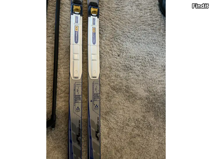 Längdskidor Fischer väl använda: 162 cm, SNS bindning Skidskor Salomon nästan som nya SNS: storlek 38, innermått 23,5 cm Stavar Rex Apollo längd 120 cm