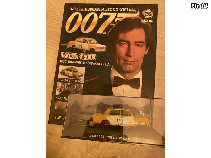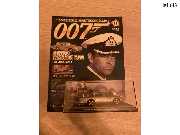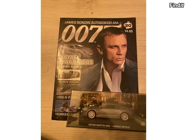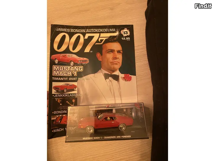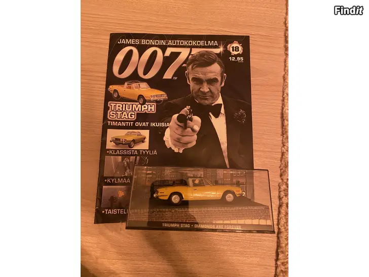 James Bond bilar med tillhörande tidning. Tidningarna är på finska.