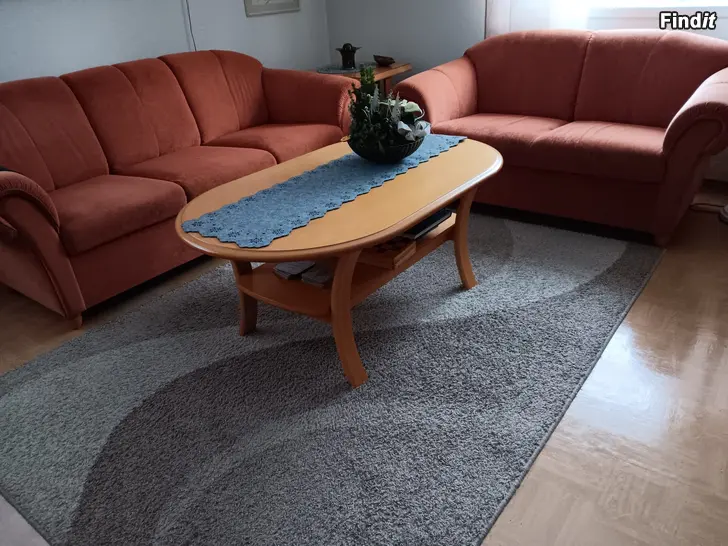 Säljes soffgrupp med en tresits soffa och en två sits soffa. Soffbord med på köpet. Köpta från Isku och är i bra skick trots många år i anvädning.